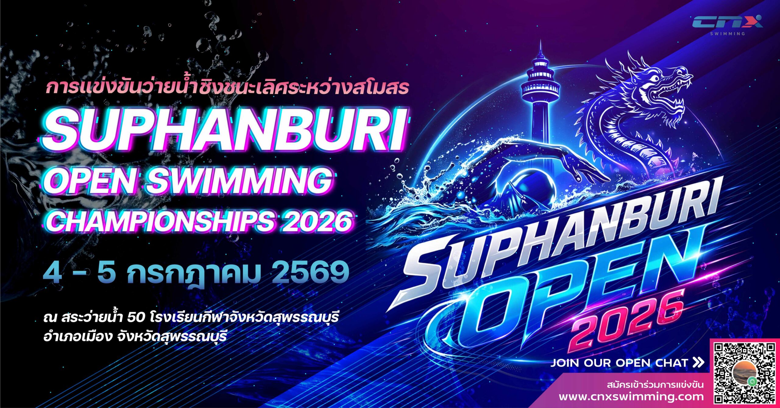 3rd Suphan Buri Open Swimming Championships 2026 วันที่ 4-5 กรกฎาคม 2569 ณ สระว่ายน้ำ 50 เมตร โรงเรียนกีฬาจังหวัดสุพรรณบุรี จังหวัดสุพรรณบุรี